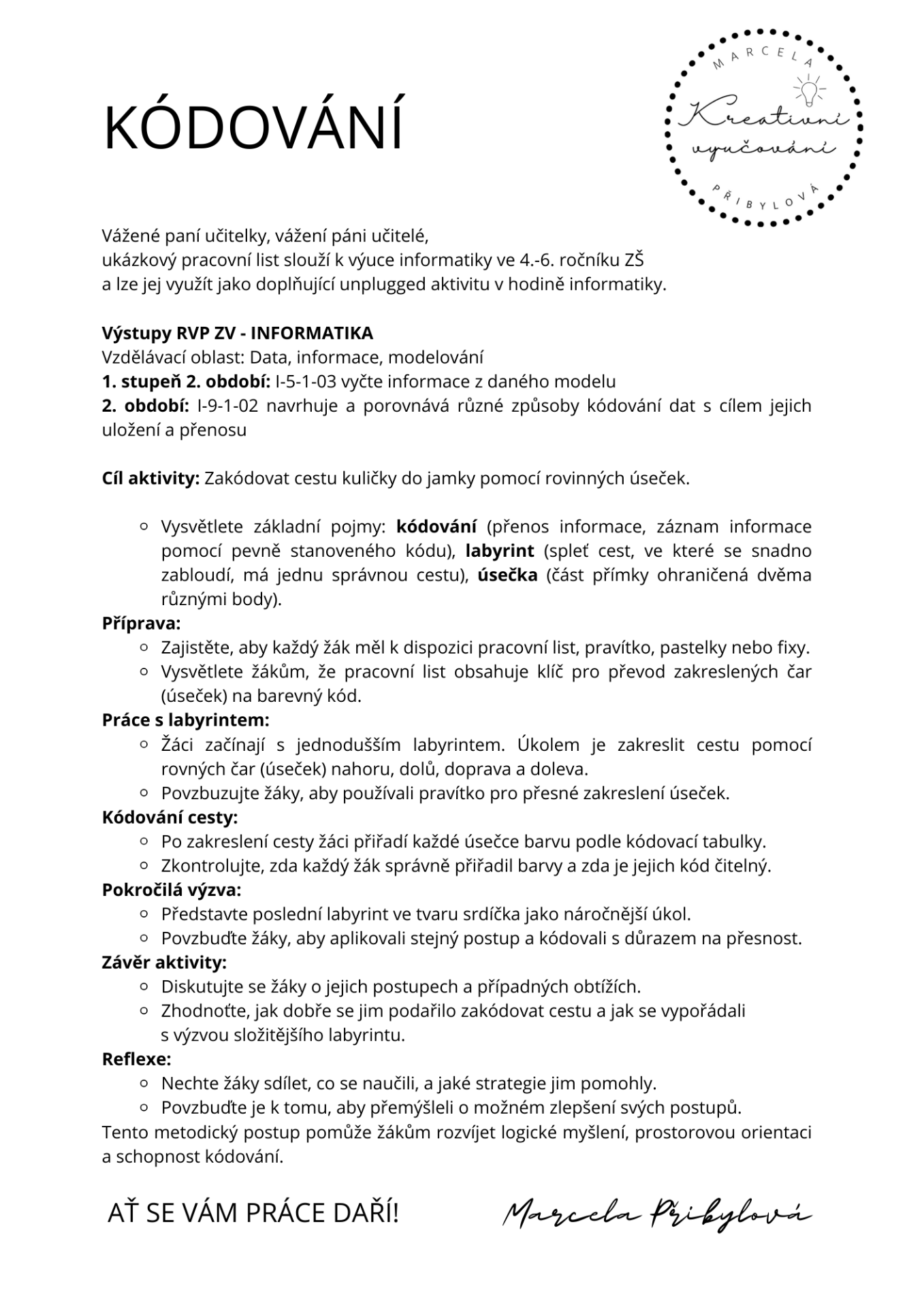 Pracovní list slouží jako doplňující unplugged aktivita do hodiny informatiky ve 4.-6. ročníku ZŠ. Stáhněte si zdarma do svého počítače.