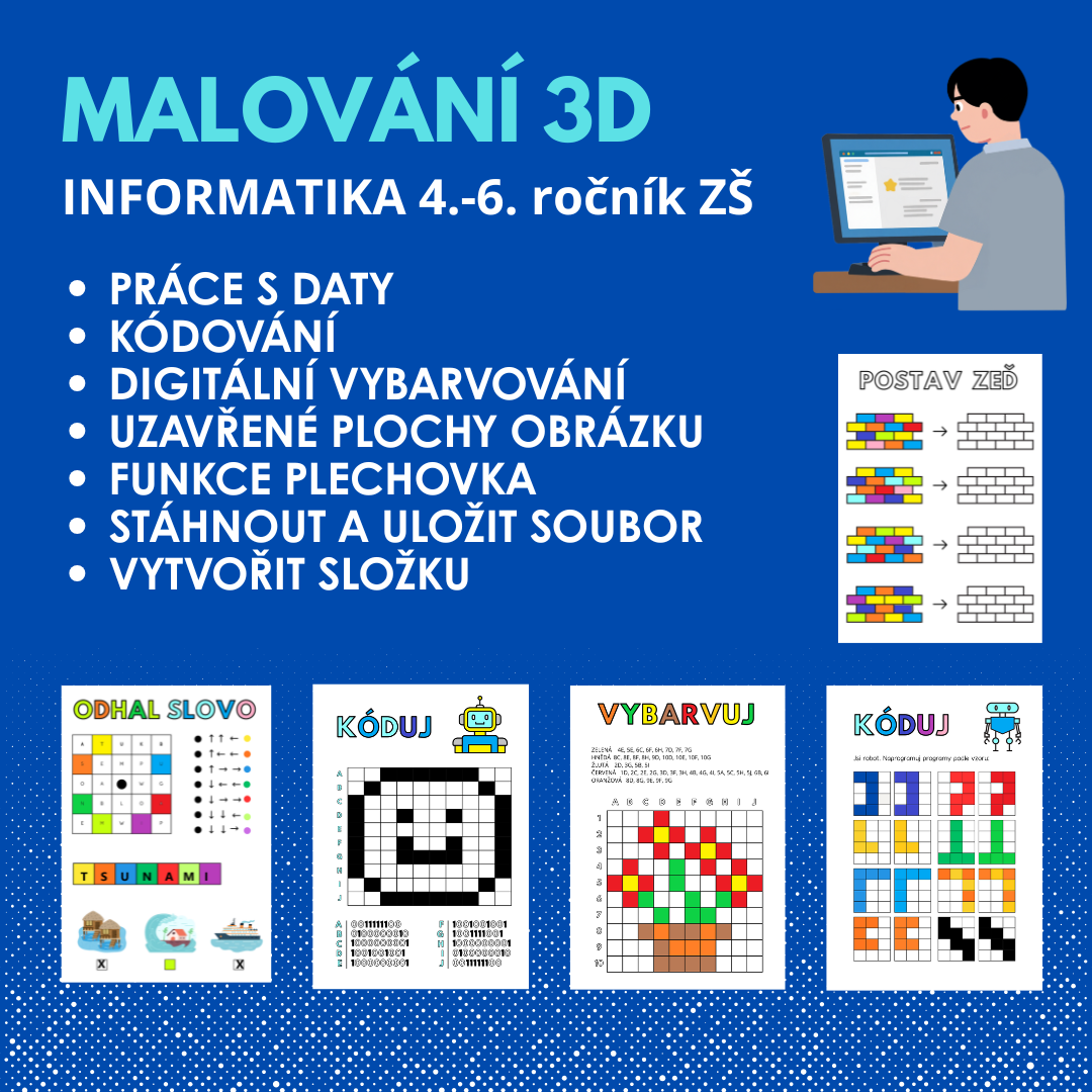 Materiál slouží k práci se soubory a digitálnímu vybarvování v programu Malování 3D v hodině informatiky ve 4.-6. ročníku ZŠ.
